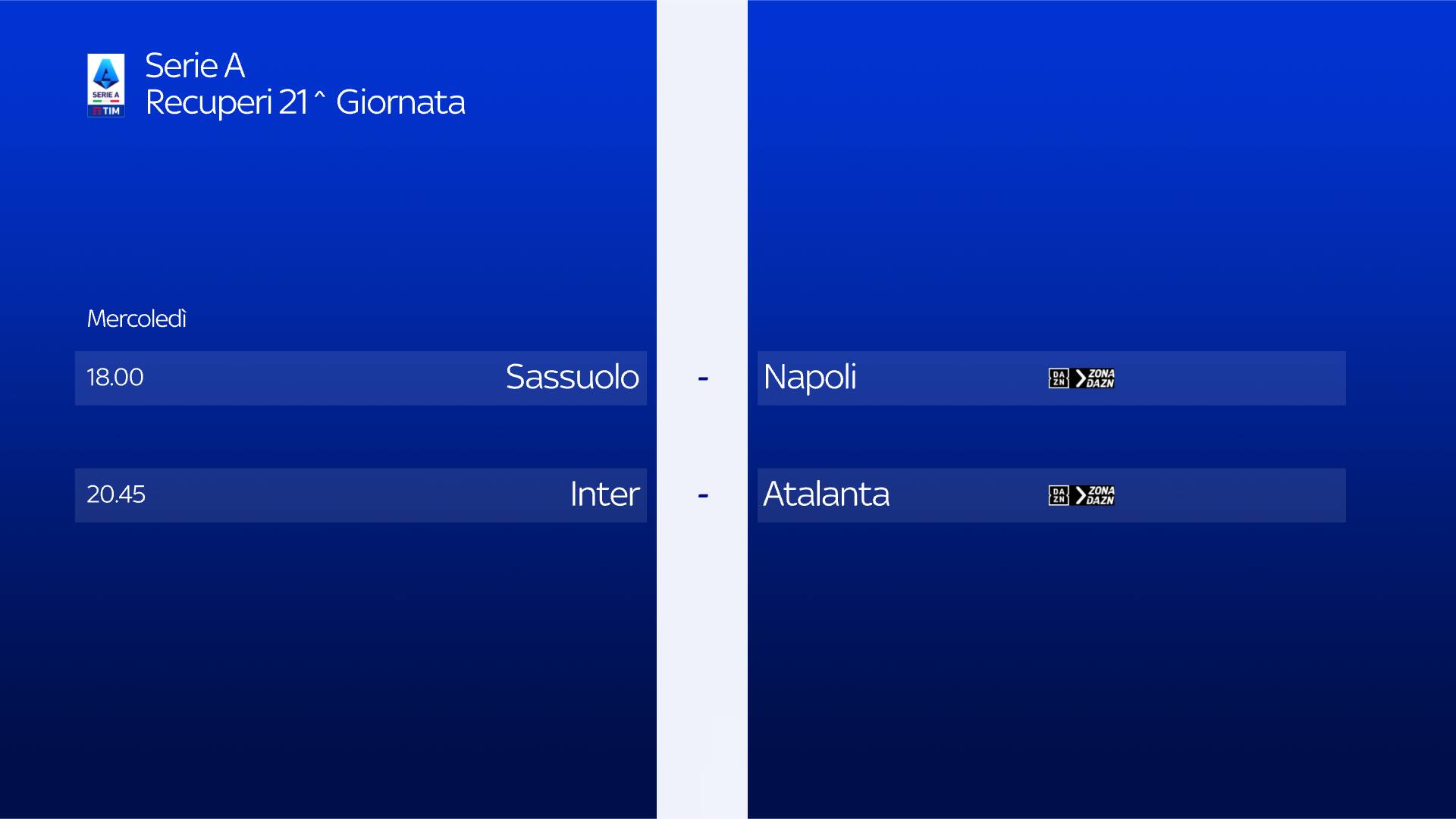 guida tvLa partita tra Inter e Atalanta, recupero della 21^giornata di Serie A si gioca oggi, mercoledì 28 febbraio alle 20.45 e sarà in diretta sulla app di DAZN e su ZONA DAZN, disponibile al canale 214 del telecomando Sky