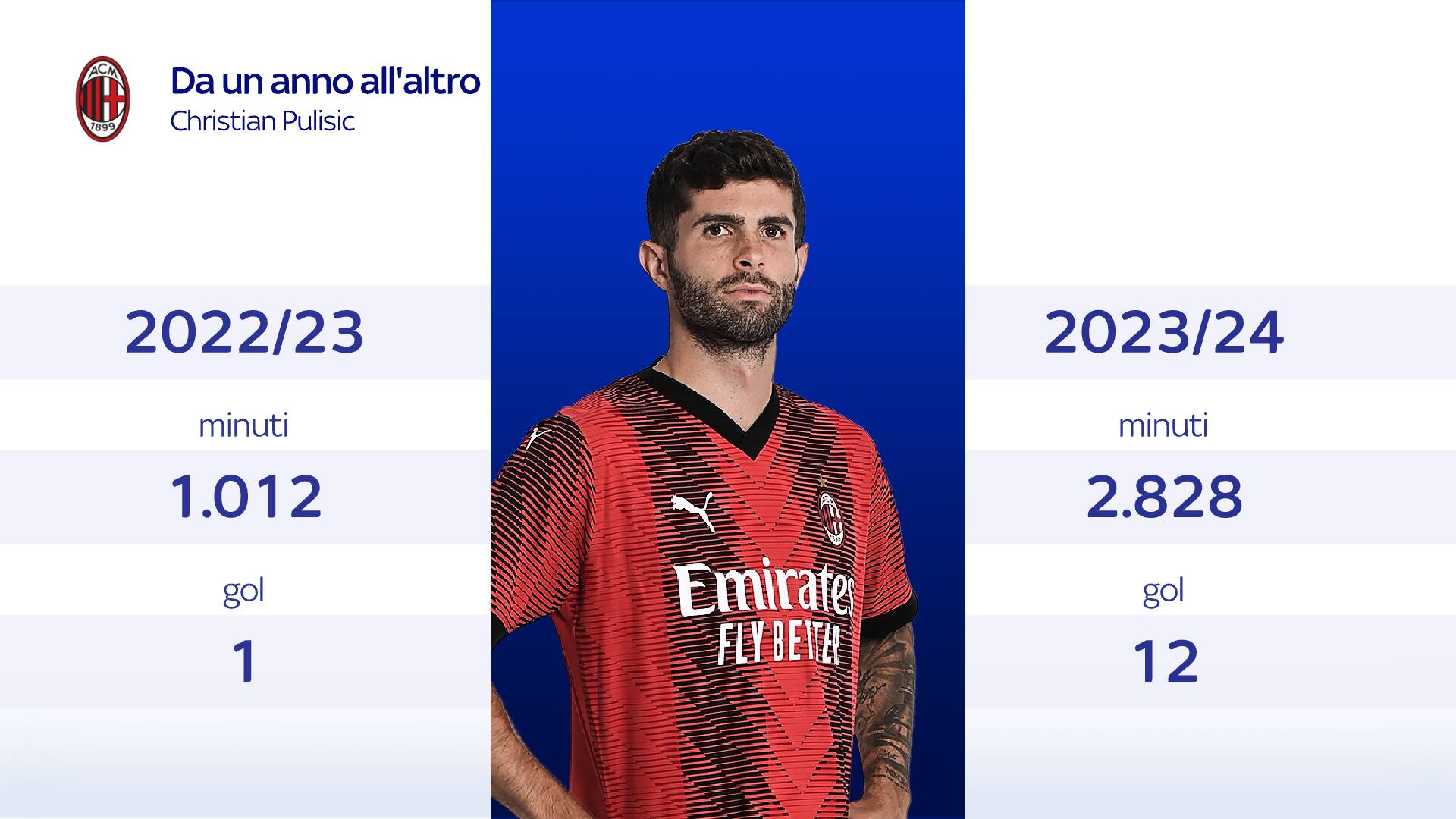 Rilanciare giocatori in difficoltà nei grandi club e valorizzare quelli presenti in rosa per tenere sempre alto il livello del Milan. Obiettivo centrato dalla dirigenza rossonera e da Stefano Pioli. Alcuni sono completamente rinati e quello di Pulisic è il caso più emblematico. Lo scorso anno nel Chelsea poco più di mille minuti giocati e un solo gol. Quest'anno, oltre ad aver triplicato l'impiego, ha raggiunto il record di gol in carriera e tornerà a Milanello fresco campione della Concacaf Nations League, giocata da capitano e vinta contro il Messico.