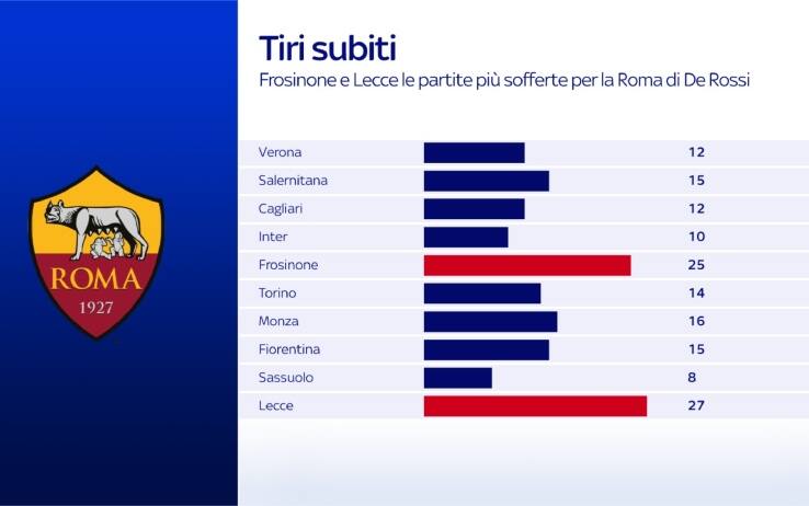 E' una Roma che torna delusa da Lecce. Poca qualità, gioco insufficiente risultato deludente. C’è tutto questo nella partita del via del Mare a cui aggiungere un rigore netto non assegnato. Rimane il livello della prestazione insufficiente di una squadra totalmente dominata dal Lecce su intensità nei duelli, corsa e anche contenuti tecnici. Il pareggio va stretto alla squadra di Gotti e va di lusso alla Roma evidentemente condizionata dall’assenza di Dybala e Pellegrini. Se a una squadra che vuole dominare il gioco con il possesso palla mancano i due calciatori di maggiore qualità il prezzo da pagare è troppo alto