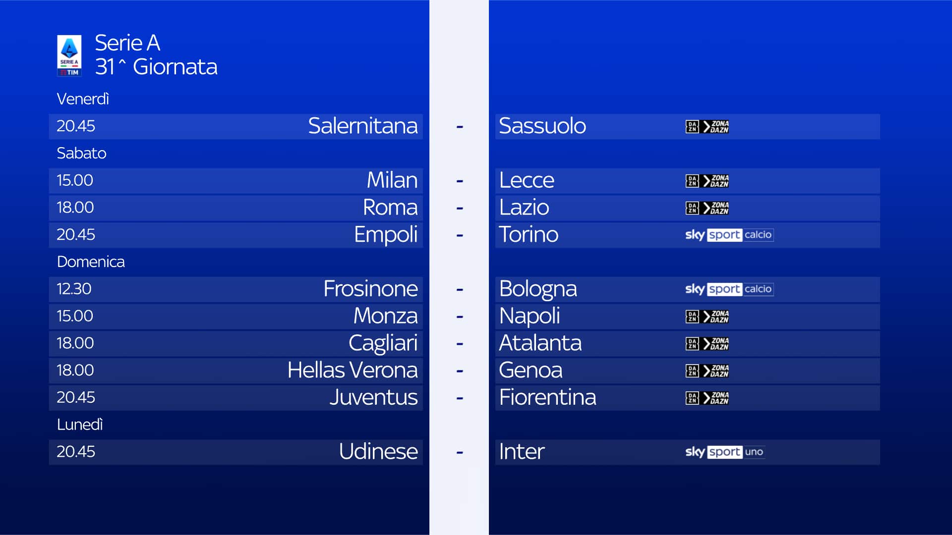 guida tvLa partita tra Salernitana e Sassuolo che apre la 31^ giornata di Serie A si gioca oggi, venerdì 5 aprile alle 20.45 e sarà in diretta sulla app di DAZN e su ZONA DAZN, disponibile al canale 214 del telecomando Sky