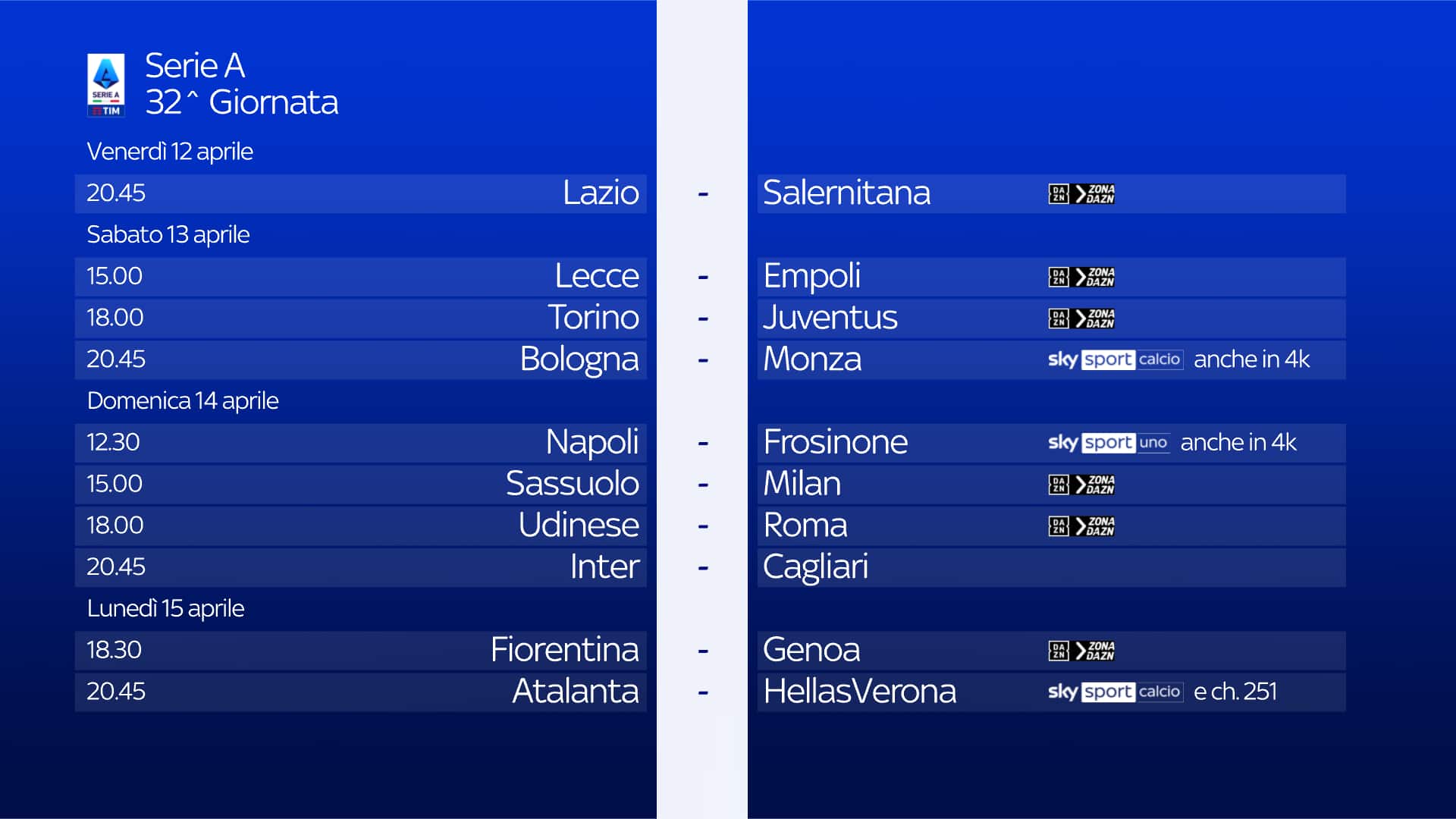 guida tvLa partita tra Lecce e Empoli si gioca sabato 13 aprile alle 15 e sarà in diretta sulla app di DAZN e su ZONA DAZN, disponibile al canale 214 del telecomando Sky