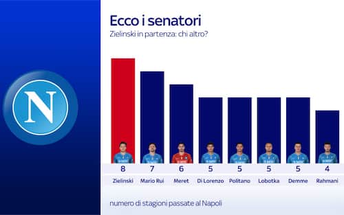 - Serve una diversa partecipazione ai gol l'anno prossimo e questa potrebbe garantirla qualche buona operazione di mercato, ma chi resterà al Napoli? Oltre a Zielinski, destinato all'Inter, ci si interroga sul futuro di alcuni senatori. Mario Rui è alla settima stagione in azzurro, Meret (in scadenza) alla sesta, sono a quota 5 Di Lorenzo, Politano, Lobotka e Demme.