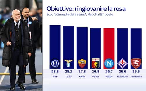 - In attesa di capire da quale allenatore ripartirà il Napoli e quali saranno gli obiettivi di mercato, sembra esserci una strategia ben precisa: acquistare giovani e di talento. L'attuale rosa è, infatti, la quinta più anziana per età media della Serie A (26.7 anni) e la necessità è ringiovanirla.