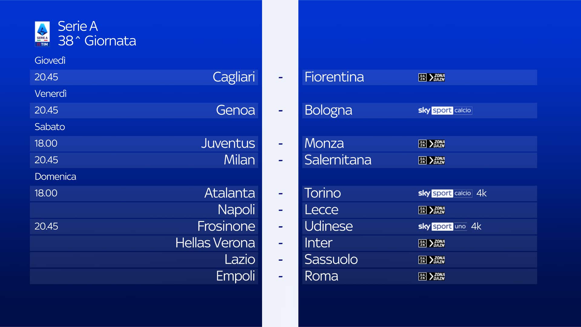 guida tvLa partita tra Empoli e Roma si gioca domenica 26 maggio alle 20.45 e sarà in diretta sulla app di DAZN e su ZONA DAZN, disponibile al canale 214 del telecomando Sky
