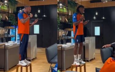 videoCome avviene per tutti i nuovi arrivi, anche Thiago Motta deve esibirsi con il microfono per cantare. Prima però un discorso alla squadra che apprezza e applaude il nuovo allenatore. Proprio come l’ex Bologna, anche altri nuovi calciatori si sono esibiti cantando una canzone al meglio delle proprie capacità