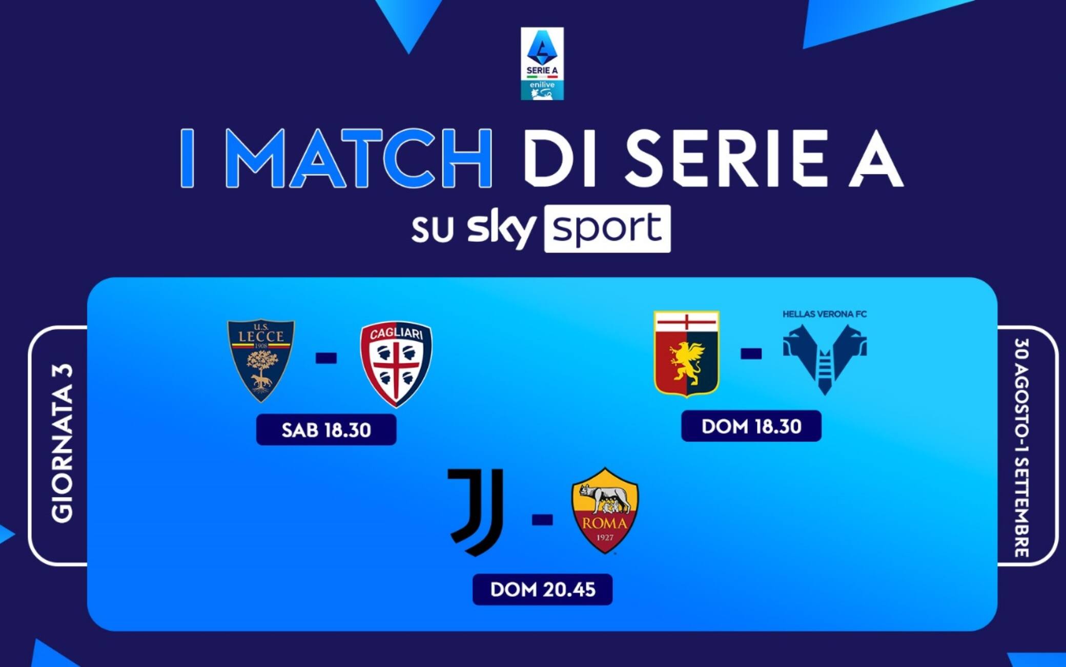 La partita tra Genoa-Verona, valida per la 3^ giornata di Serie A, sarà trasmessa domenica 1° settembre alle 18.30 su Sky Sport Uno, Sky Sport 252 e in streaming su NOW. La telecronaca è affidata a Daniele Barone, con il commento di Massimo Gobbi. A bordocampo Marina Presello e Riccardo Re. A partire dalle 17.30 appuntamento con 'Calcio d’Estate'. In studio Leo Di Bello, Riccardo Gentile e Stefano De Grandis.