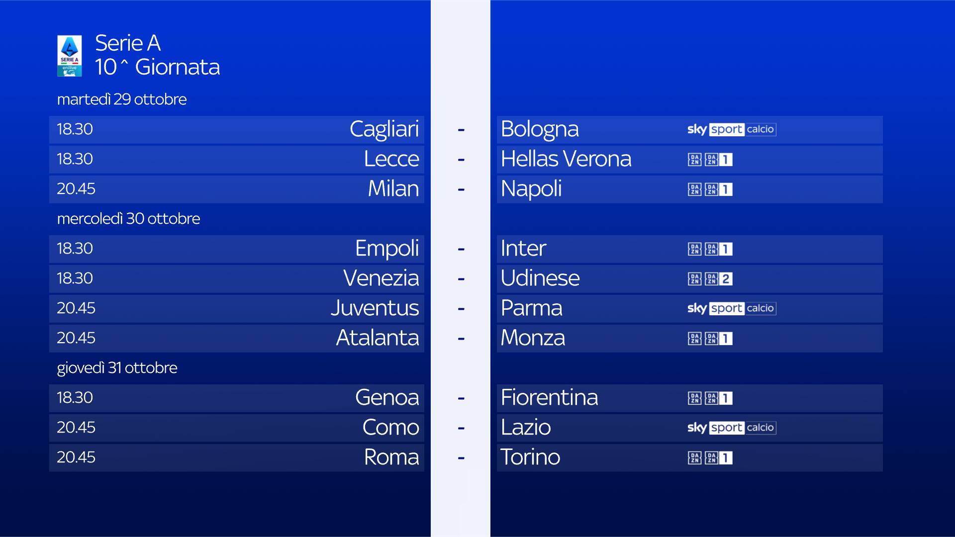 guida tvLa partita tra Lecce e Hellas Verona si gioca martedì 29 ottobre alle 18.30 e sarà in diretta sulla app di DAZN e sul canale DAZN, disponibile al canale 214 del telecomando Sky