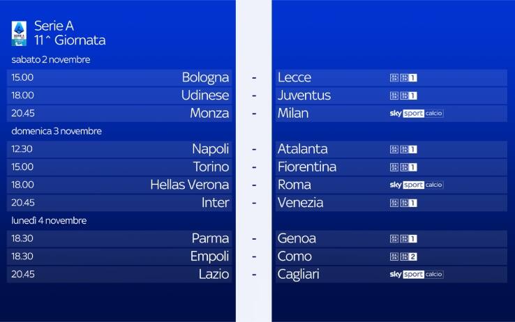Il calendario di Serie A, le partite e gli orari dell'11^ giornata