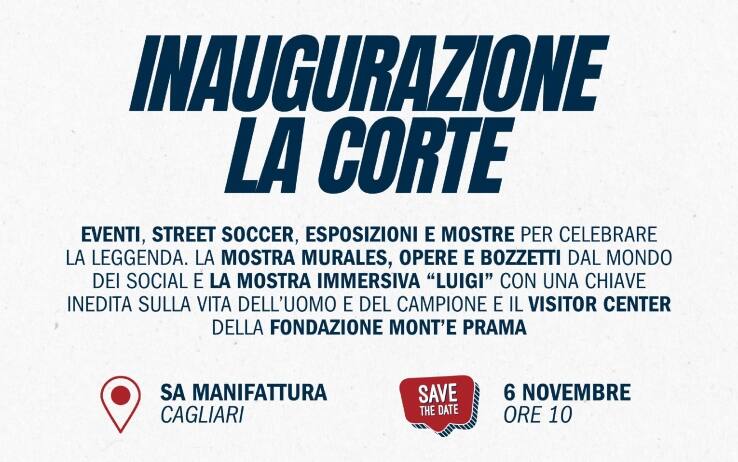 Alle 10.00, alla Manifattura Tabacchi, si inaugurerà La Corte, centro nevralgico della manifestazione, con aree dedicate allo street soccer, esposizioni dei murales e contributi artistici dal mondo social, e la mostra immersiva “Luigi”, che offrirà una prospettiva profonda sulla vita di Riva. Sempre alla Manifattura, ci sarà anche il Visitor Center della Fondazione Mont’e Prama, partner istituzionale dell’evento. Alle 18:00, il Notorious Cinemas ospiterà la proiezione del film Nel nostro cielo un rombo di tuono di Riccardo Milani con una introduzione del regista prima della visione. La giornata si concluderà alle 20.00 presso Doppio Malto con “Pensieri e parole”, serata di aneddoti e musica condotta da Veronica Baldaccini ed Egidiangela Sechi, accompagnate dalla voce di Chiara Effe e la sua band, e tanti ospiti. A partire dal 6 novembre, presso i campi CS Belly dell’Ossigeno, sarà allestita un’area con accesso gratuito per le sfide due contro due.