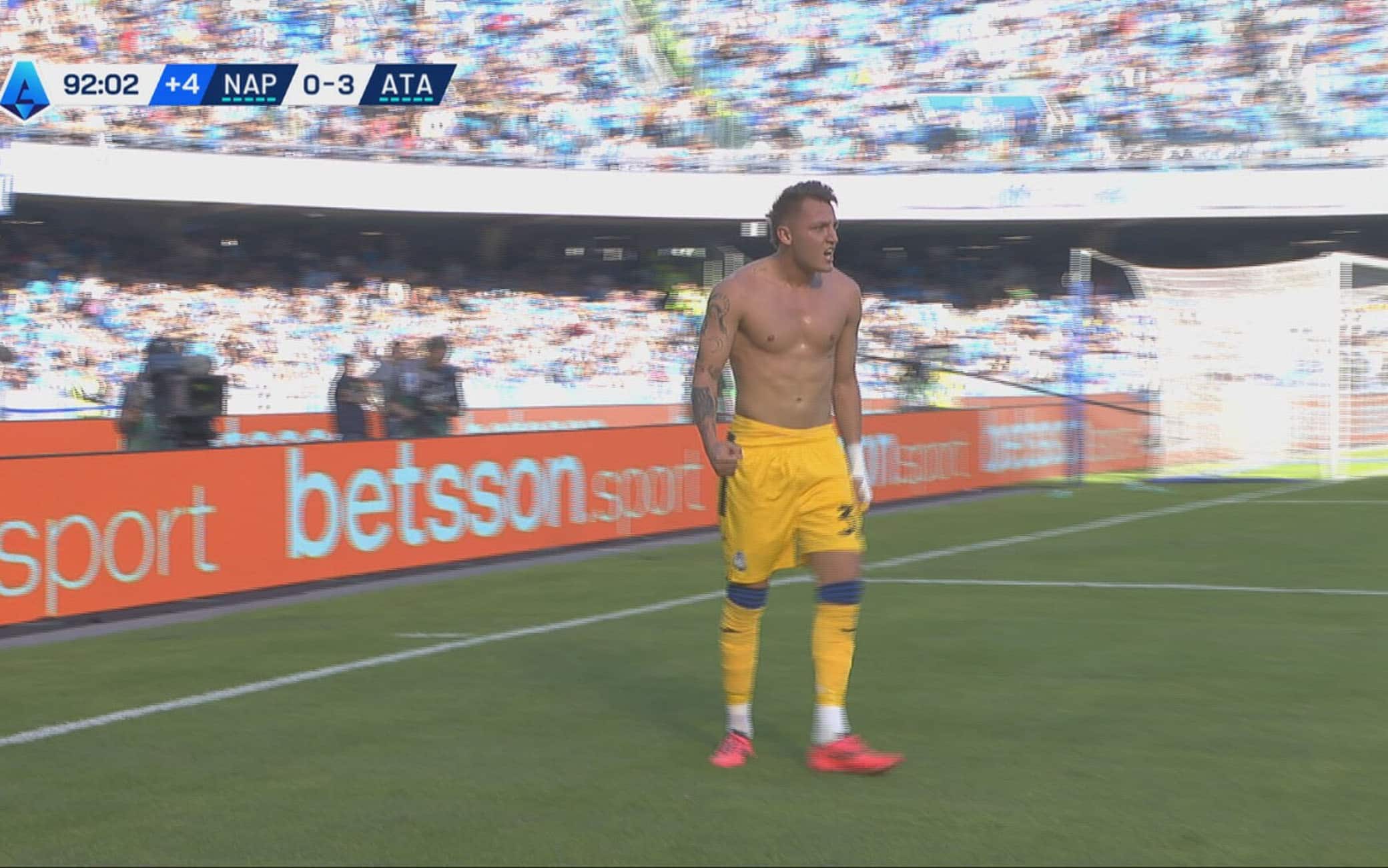 IL CASOA segno al 92' al Maradona, Mateo Retegui si toglie la maglia per festeggiare il definitivo 3-0. Un'esultanza che comporta l'ammonizione a norma di regolamento ma, nel gestire il parapiglia dopo la rete, l'arbitro Doveri estrae il giallo per Conte e Neres (entrambi per proteste) dimenticando di sanzionare l'attaccante dell'Atalanta. Un episodio curioso dalle conseguenze per gli appassionati di fantacalcio