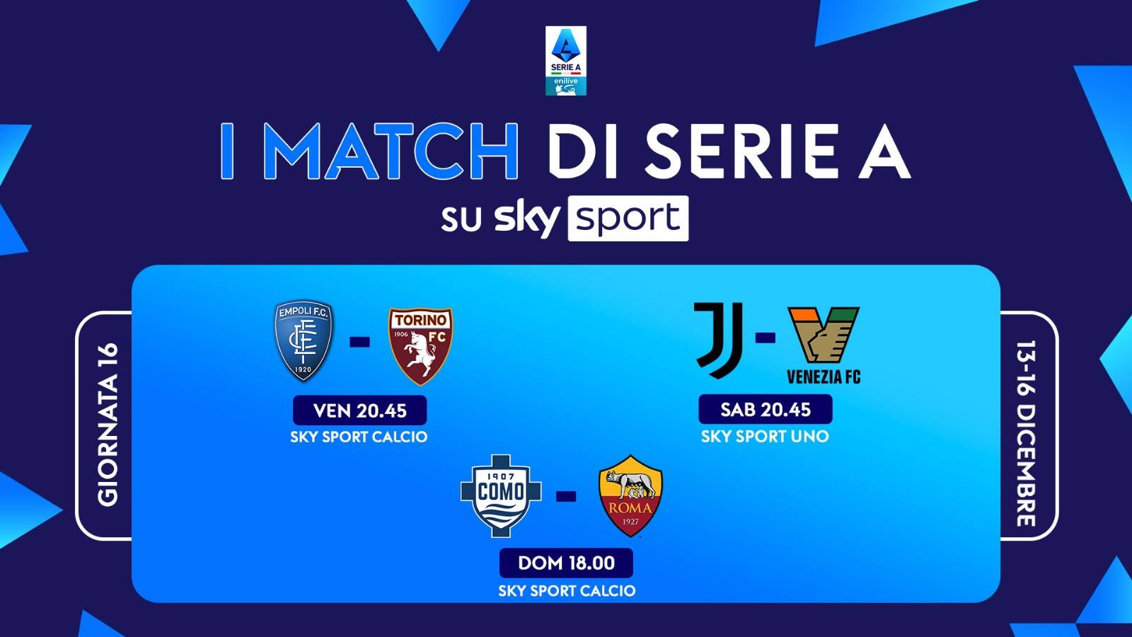guida tvLa partita tra Empoli e Torino che apre la 16^ giornata di Serie A, si gioca venerdì 13 dicembre alle ore 20.45 e sarà trasmessa in diretta su Sky Sport Calcio, Sky Sport 251 e in streaming su NOW
