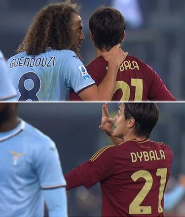 Dobbiamo tornare allo scorso 6 aprile, derby vinto 1-0 in campionato dalla Roma grazie al gol di Mancini. E anche in quell'occasione Dybala e Guendouzi erano stati protagonisti di screzi in partita e al fischio finale: qualche parola di troppo, strette al collo e ai capelli (del francese) prima del secondo round. La Joya decise infatti di provocare l'avversario mostrandogli il suo parastinco, che raffigurava il trionfo dell'Argentina ai Mondiali del 2022 proprio contro la Francia. E al fischio finale lo stesso Dybala esultò in faccia a Guendouzi, ennesimo capitolo di una rivalità che era appena iniziata...