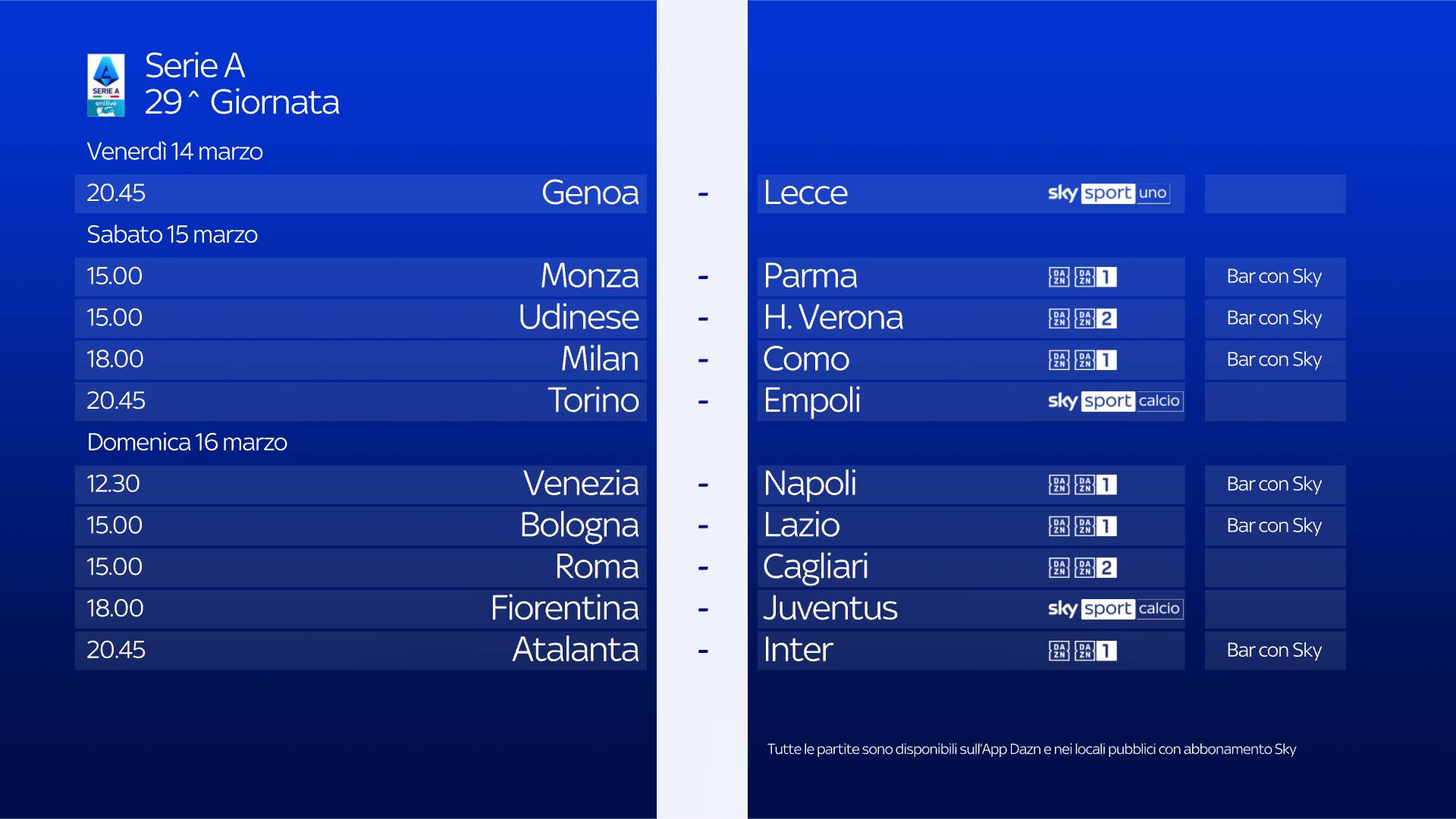 guida tvLa partita Monza-Parma della 29^ giornata di Serie A si gioca sabato 15 marzo alle ore 15 e sarà in diretta sulla app di DAZN e sul canale DAZN, disponibile al canale 214 del telecomando Sky
