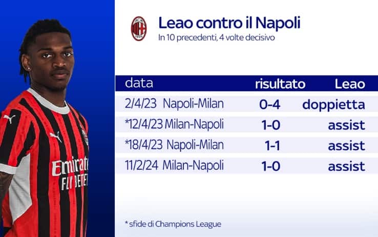 I due mancini sono stati spesso decisivi nelle sfide contro il Napoli per un totale di 4 gol e 5 assist ripartiti tra campionato e il quarto di Champions League con Pioli in panchina. Conceicao spera che possano continuare a cantare, o meglio, tornare a farlo perché in questa stagione sono stati spesso distanti dai loro livelli di rendimento. Devono ritrovarsi e riuscire a fare la differenza. Sarebbe la normalità, come la presenza di Ibra al centro sportivo.