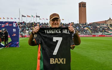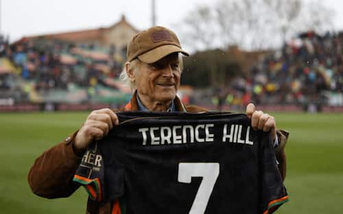 Tanti auguri Terence Hill: il celebre attore (al secolo Mario Girotti) compie infatti 86 anni. Per festeggiarlo la squadra della sua città natale, Venezia, lo ha omaggiato regalandogli la maglia e tributandogli l'omaggio di tutto lo stadio Penzo