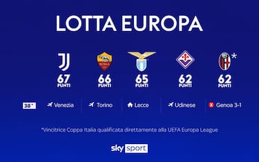 Ancora un pareggio dopo Udine, 1-1 nello scontro diretto che oggi vale il 7° posto in classifica. Finisce in parità al Dall'Ara, sfida per inseguire un posto in Champions che attualmente non premia il Bologna. Avanti con Thuram, la Juventus si fa riprendere da Freuler ma il risultato non cambia più. A tre giornate dalla fine, e con una finale di Coppa Italia da contendere al Milan, i rossoblù restano più vivi che mai. Ne ha parlato Vincenzo Italiano nel post-partita: "Sono contentissimo della prestazione dei ragazzi. Ritmo altissimo, dopo lo svantaggio abbiamo preso in mano la partita. Loro erano freschi e lucidi, ci hanno fatto male nel primo tempo. Dopo il pareggio non abbiamo avuto la forza di trovare il secondo guizzo, ma è stata una prestazione straordinaria. Non finisce qui: ci siamo e siamo ancora capaci di giocare con questo grande ritmo. Nei primi 15 minuti abbiamo perso qualche duello: il passo che ha Thuram era difficile da contrastare e spaccava quella zona di centrocampo facendo la differenza. Potevamo fare qualcosa di più, forse la deviazione di Ferguson ha spiazzato Skorupski. Quando abbiamo preso le misure abbiamo fatto bene con tanti duelli vinti".