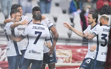Ancora una vittoria, meno scintillante rispetto al clamoroso 4-3 contro il Barcellona, ma fondamentale per restare in corsa verso lo scudetto. L'Inter fa il suo dovere sotto il diluvio di Torino: vince 2-0 con un ampio turnover (9 cambi rispetto a San Siro) e accorcia a -1 dal Napoli fermato sul 2-2 dal Genoa in serata. Non può che essere soddisfatto Simone Inzaghi, che ha parlato anche della corsa al titolo: "Non è più nelle nostre mani, dobbiamo cercare di fare partite serie come stasera. Il Torino non perdeva da 9 partite in casa, serviva un’Inter tosta e determinata. Così è stato. Il 3-4-3 con Zalewski? Nicola Sta facendo molto bene, si è calato bene. Ha qualità e nasce in quel ruolo, poi è diventato un quinto di centrocampo. Ci mancavano giocatori in mezzo al campo come Calha e Barella, poi entrati nella ripresa. E c’era questa possibilità che Zalewski giocasse con Correa dietro a Taremi. Fino al diluvio abbiamo giocato molto bene, gara lucida e bravi i ragazzi". Sulla gestione delle forze da qui alla finale di Champions: "Sicuramente avremo qualche giorno libero, i ragazzi devono riposarsi dopo il tour de force. Frattesi, Mkhitaryan, Lautaro e Pavard non penso di poterli recuperare nemmeno per la prossima, vedremo a Como. Mancano 20 giorni, dobbiamo fare ancora due ottime gare e cercare di allenarci in serenità come sempre. Ansia e aspettative non portano nulla".