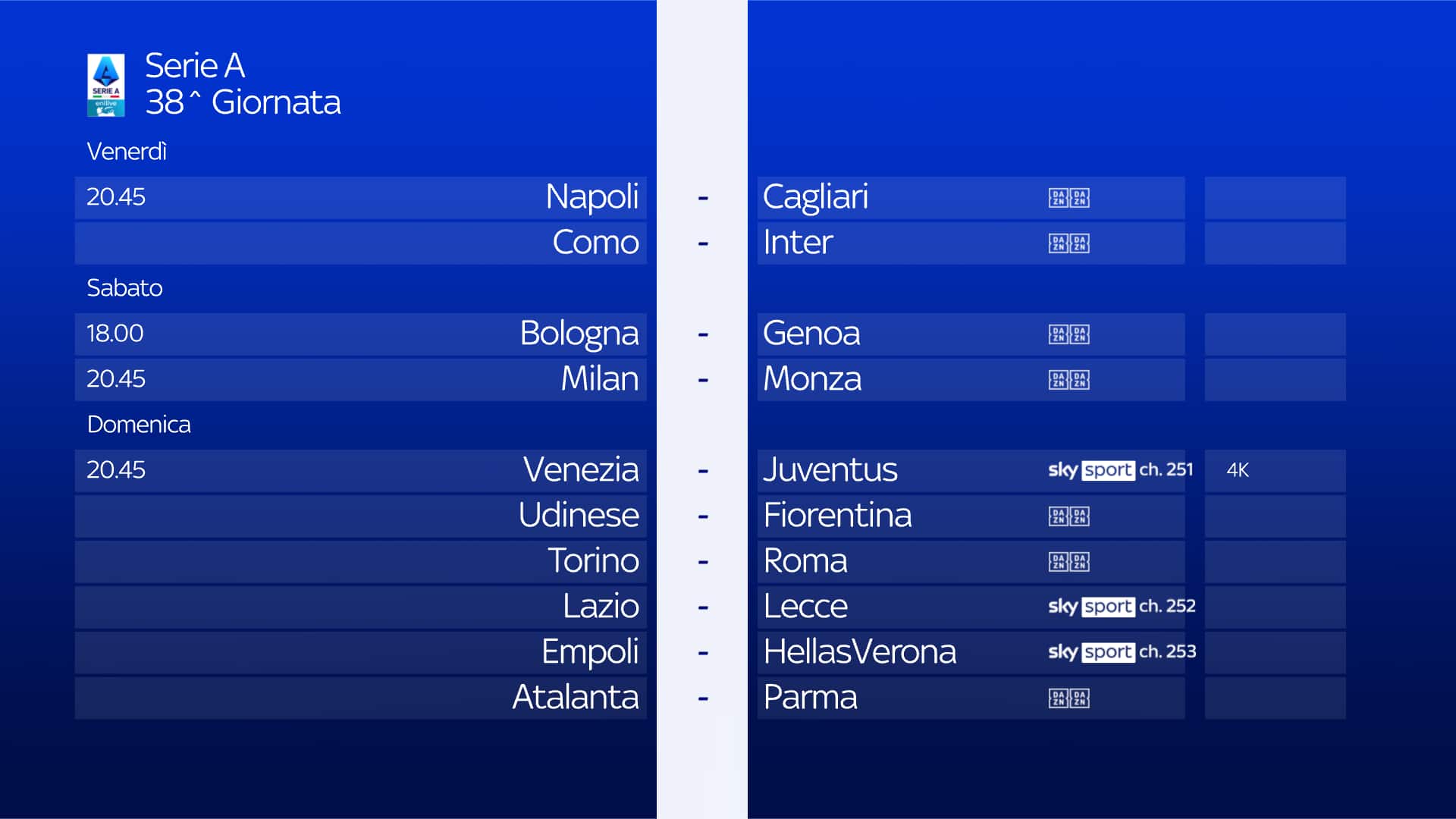 guida tvLa partita Udinese-Fiorentina della 38^ giornata di Serie A si gioca domenica 25 maggio alle ore 20.45 e sarà in diretta sulla app di DAZN e sul canale DAZN 4, disponibile al canale 217 del telecomando Sky