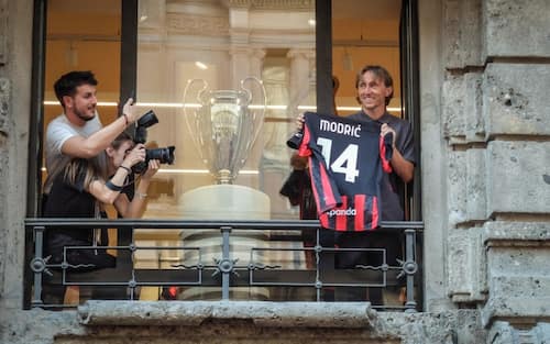 - Luka saluta i suoi nuovi tifosi dalla finestra dello store del Milan