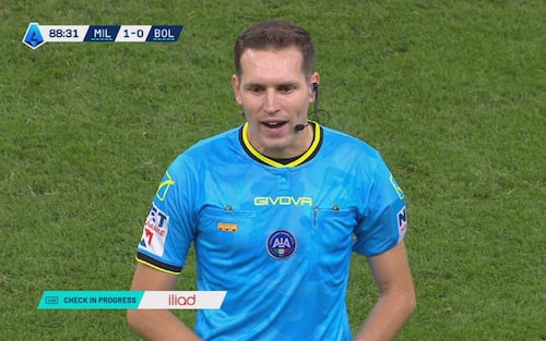 - Richiamato al Var, Marcenaro decide di cancellare il rigore. "Il numero 8 del Bologna non commette alcun fallo" la decisione annunciata al pubblico dal direttore di gara