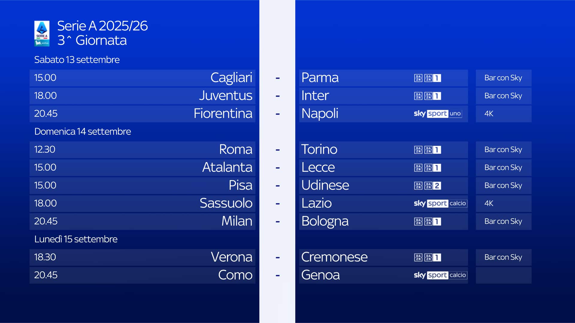 Le 10 partite di ogni turno di Serie A sono visibili anche in tutti i locali con abbonamento Sky, scopri il più vicino su sky.it/trovabar.