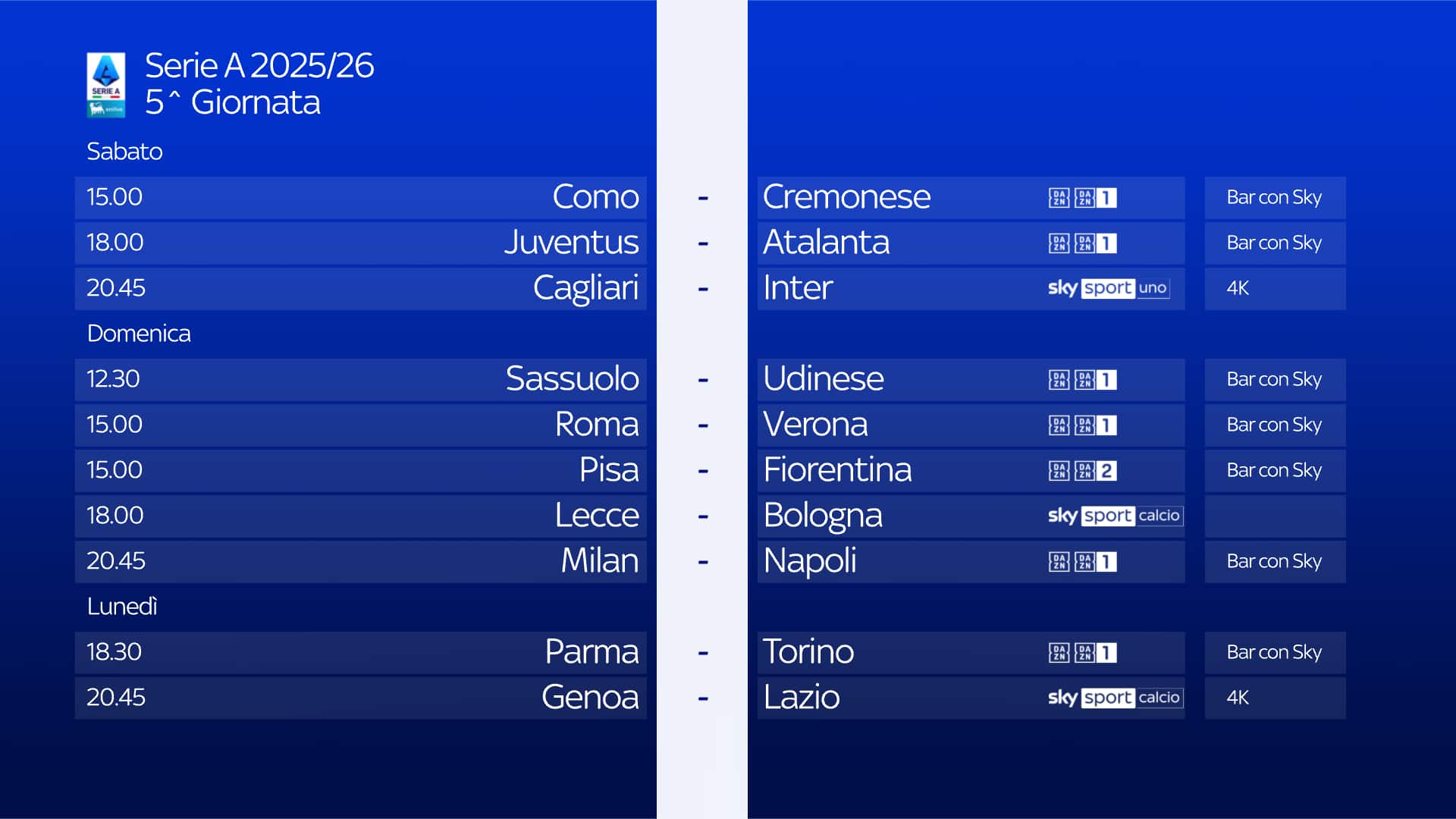 Le 10 partite di ogni turno di Serie A sono visibili anche in tutti i locali con abbonamento Sky, scopri il più vicino su sky.it/trovabar.