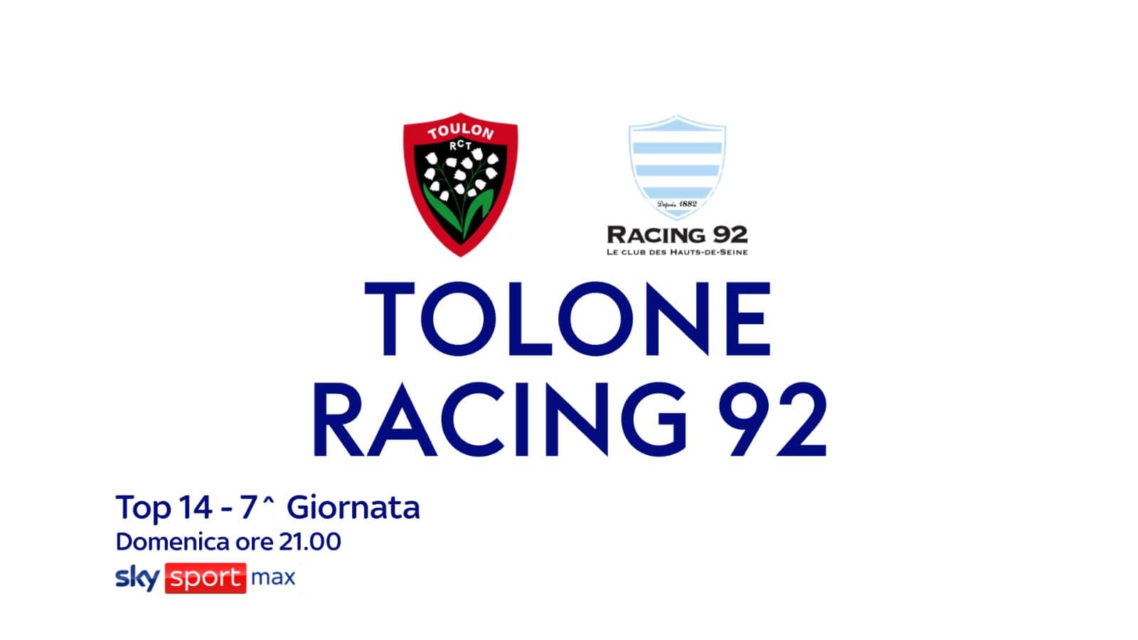- ore 21.05: Rugby, Top 14, Tolone-Racing 92 su Sky Sport Max