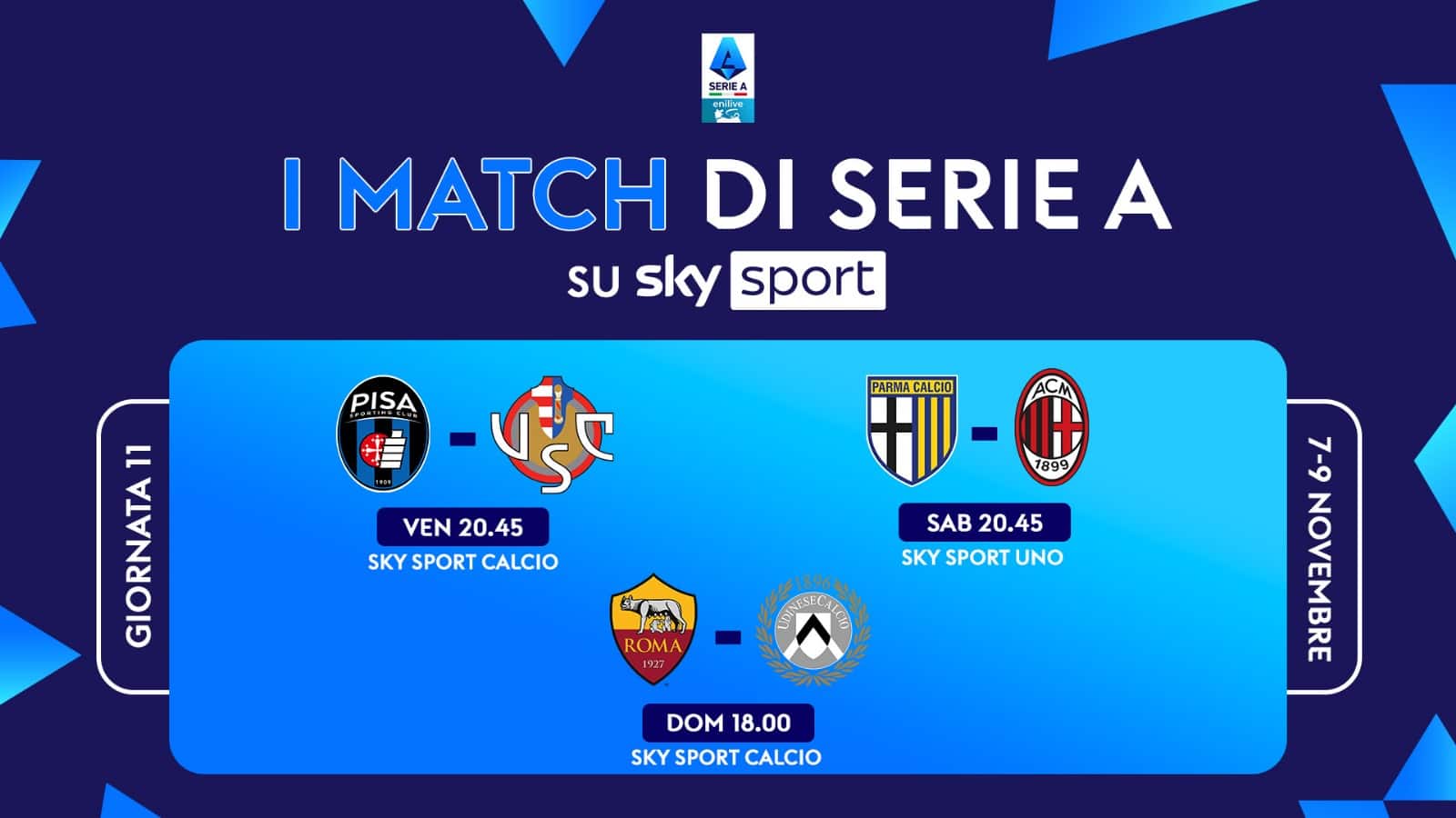 La partita tra Pisa e Cremonese, valida per la 11^ giornata di campionato, si gioca venerdì 7 novembre alle ore 20.45 e sarà in diretta su Sky Sport Calcio, Sky Sport 251 e in streaming su NOW. Telecronaca Dario Massara, commento Nando Orsi; a bordocampo Marina Presello e Francesco Cosatti. Dalle 23 a mezzanotte, appuntamento con Friday Night: in studio Fabio Tavelli, Rachele Sangiuliano, Massimo Marianella e Alessandro Costacurta.