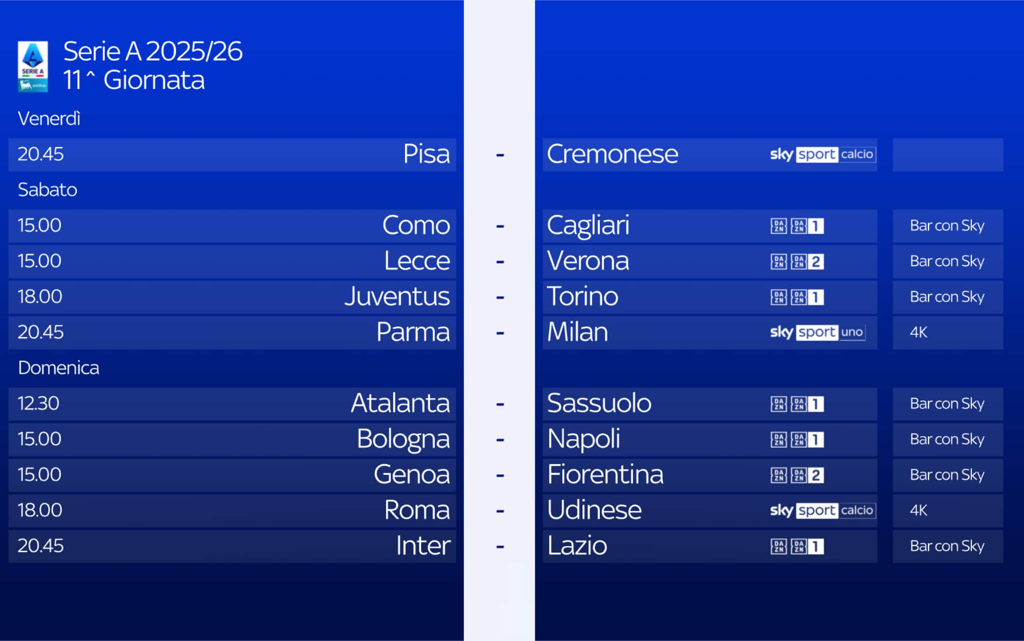 Le 10 partite di ogni turno di Serie A sono visibili anche in tutti i locali con abbonamento Sky, scopri il più vicino su sky.it/trovabar.