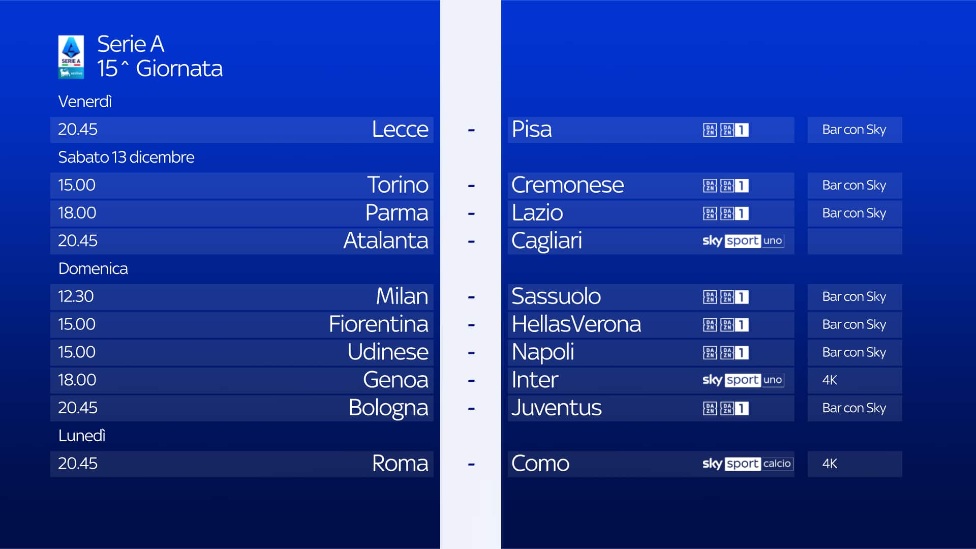 Le 10 partite di ogni turno di Serie A sono visibili anche in tutti i locali con abbonamento Sky, scopri il più vicino su sky.it/trovabar.