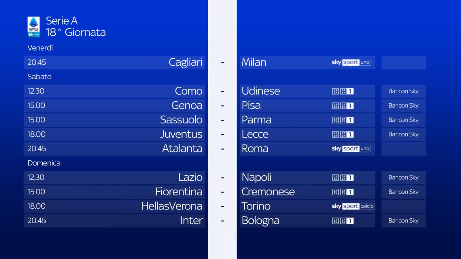 Le 10 partite di ogni turno di Serie A sono visibili anche in tutti i locali con abbonamento Sky, scopri il più vicino su sky.it/trovabar.