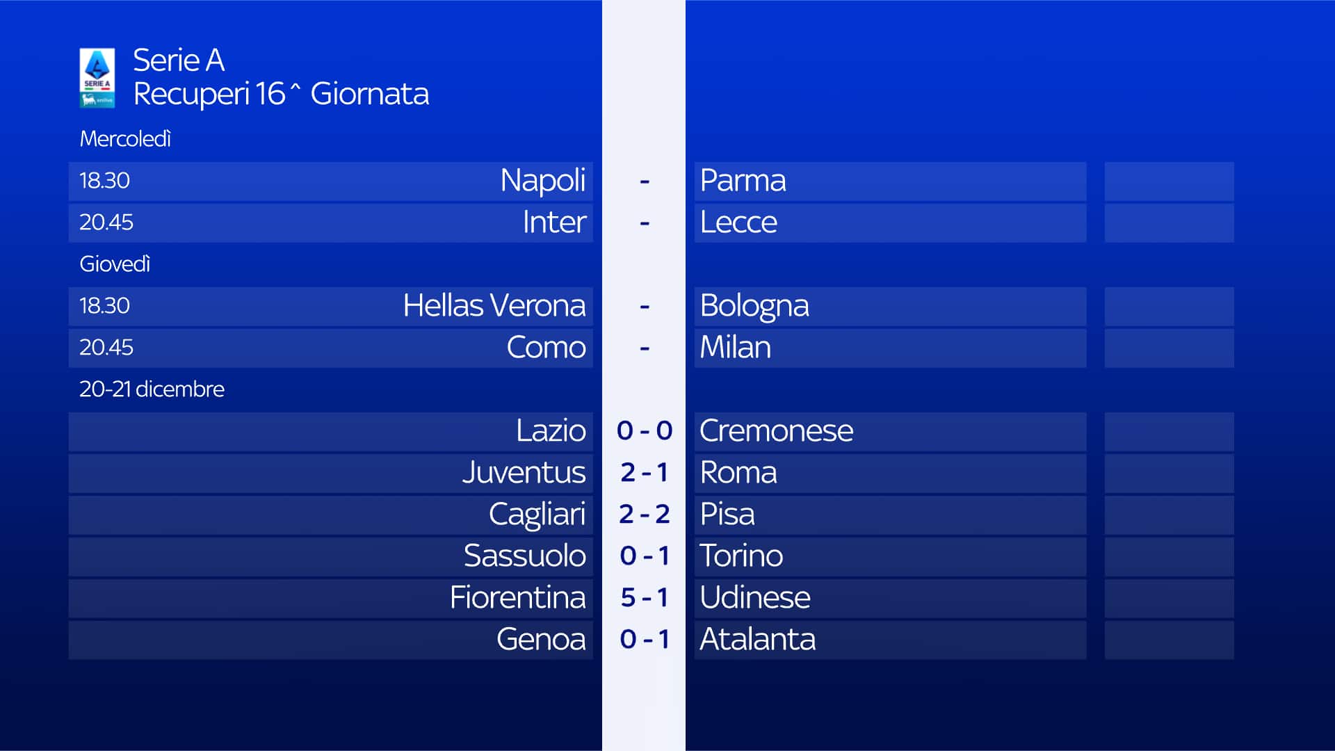 guida tvLa partita tra Napoli e Parma, recupero della 16^ giornata di Serie A, si gioca mercoledì 14 gennaio alle 18.30 e sarà in diretta sulla app di DAZN e sul canale DAZN, disponibile al canale 214 del telecomando Sky