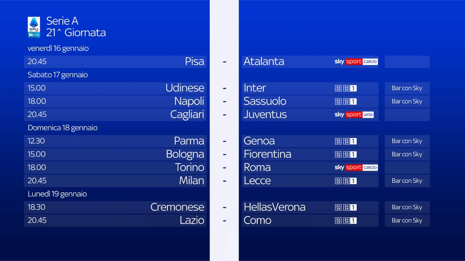 guida tvLa partita tra Milan e Lecce della 21^ giornata di Serie A si gioca domenica 18 gennaio alle 20.45 e sarà in diretta sulla app di DAZN e sul canale DAZN, disponibile al canale 214 del telecomando Sky