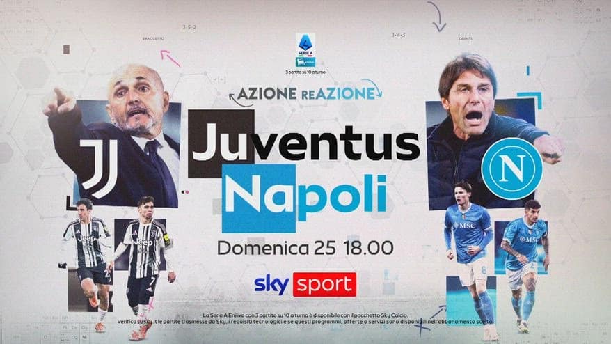 - alle 18.00: JUVENTUS-NAPOLI su Sky Sport Uno, Sky Sport Calcio, Sky Sport 251, Sky Sport 4K e in streaming su NOW. Telecronaca Federico Zancan, commento Riccardo Montolivo; inviati Francesco Cosatti, Giovanni Guardalà e Massimo Ugolini