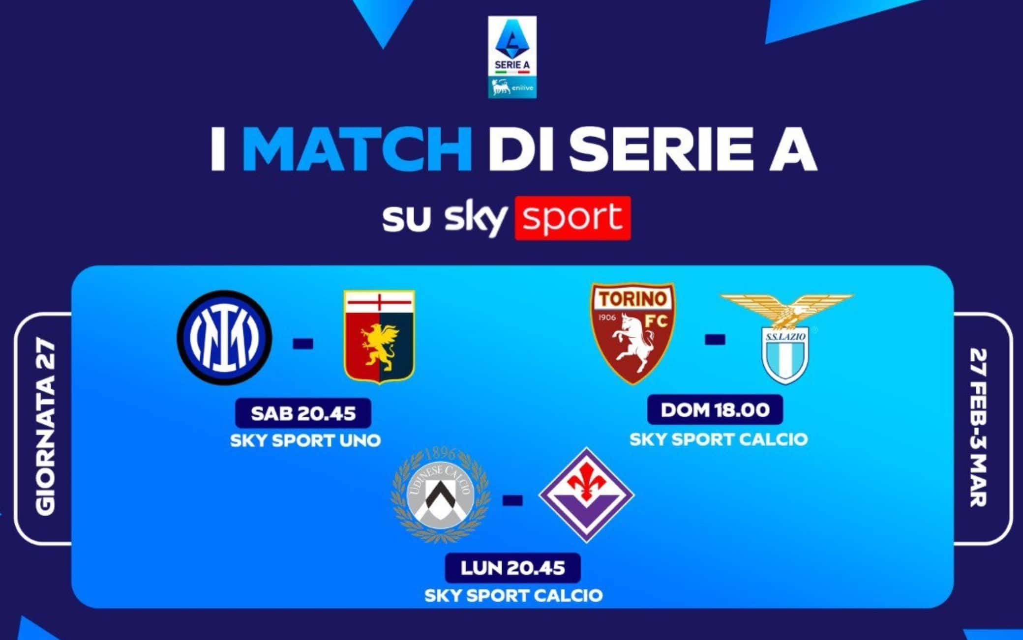 guida tvLa partita Inter-Genoa della 27^ giornata di Serie A, si gioca sabato 28 febbraio alle ore 20.45 e sarà in diretta su Sky Sport Calcio, Sky Sport Uno, Sky Sport 4K, Sky Sport 251 e in streaming su NOW