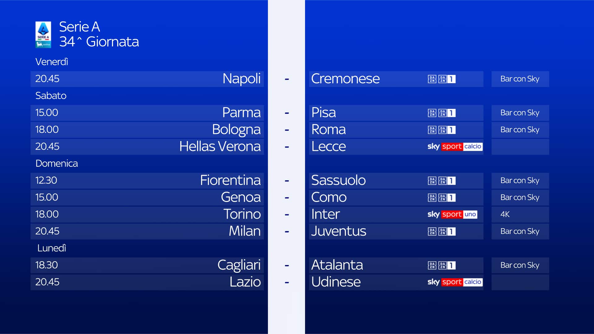 Le 10 partite di ogni turno di Serie A sono visibili anche in tutti i locali con abbonamento Sky, scopri il più vicino su sky.it/trovabar.