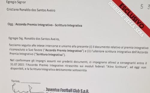 - Tale “side letter” - firmata solo dall'ex responsabile dell'area tecnica Juve Fabio Paratici (indagato assieme ai vecchi vertici societari bianconeri) e non controfirmata da Cristiano Ronaldo – rappresenterebbe una scrittura privata in cui la Juventus, a fronte del mancato versamento a Ronaldo di alcune mensilità a causa delle difficoltà economiche dovute all’emergenza Covid, si sarebbe impegnata a restituirgli quei soldi in un secondo momento, anche qualora avesse lasciato la Juventus