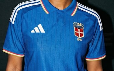 - Base blu royal con dettagli bianchi più definiti e luminosi, presenti su logo e spalle. Sul petto ci dovrebbe essere lo stemma storico di Como, con richiami anche su colletto e polsini. Un design tra retrò e moderno.
