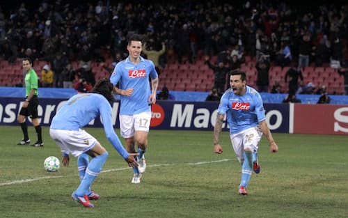 - E lì, nel giardino dei sogni di coppa, dove il San Paolo ruggisce, il Napoli ci sta bene. Finisce nel girone con Bayern, Manchester City (che proprio in quella stagione vincerà la sua prima storica Premier 44 anni dopo l'ultimo titolo) e Villarreal. E il Napoli passa. Volando agli ottavi contro il Chelsea.