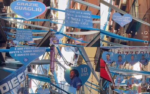 - Quello spassionato del suo popolo. Perché passeggiando per i vicoli di Napoli ci si imbatte in mille cuori, dediche, messaggi. L'amore di una città con una sola squadra, non divisa tra due club come Milano, Roma o Torino. Dove tutti amano quella squadra, dove città e squadra portano lo stesso nome, con un simbolo diretto e chiaro: la N su sfondo blu, il colore del mare.