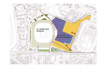 - Fase 1: comprende il nuovo tunnel Patroclo, il nuovo stadio e il podio di accesso, tutti gli spazi accessori.