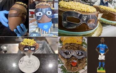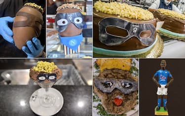 - Entrambe le creazioni avvano la mascherina protettiva e i capelli biondi del bomber del Napoli, tratti che ritroviamo anche in altre specialità a tavola