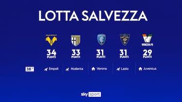 E qui la situazione si fa più complicata. La condizione necessaria perché questo accada è una vittoria dell'Empoli nello scontro diretto col Verona. A quel punto, anche il Lecce (vincendo la propria partita) e/o il Parma (pareggiando) sarebbero a quota 34. Vediamo gli scenari: