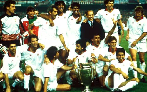 - Un'immagine simbolo del Milan di fine anni Ottanta: la squadra al completo, insieme a Berlusconi, festeggia la vittoria della Coppa dei Campioni 1988/89. In finale i rossoneri battono 4-0 la Steaua Bucarest il 24 maggio a Barcellona