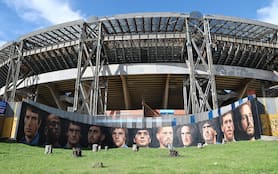 Napoli, inaugurato il murales dei 100 anni al Maradona