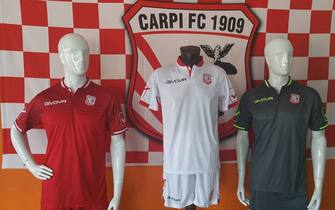 CARPI. Prodotte per il secondo anno consecutivo da Givova, le divise del Carpi votano la continuità su colori e stile. La novità sta nel colletto stile college e nella terza maglia, che stilisticamente richiama la seconda ma nei colori grigio piombo e verde acido. Classico invece il kit casalingo: casacca bianca con inserti rossi che sostituisce le strisce orizzontali poco gradite dai tifosi -