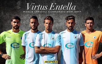 VIRTUS ENTELLA. Gradita rivelazione dello scorso campionato, la squadra ligure accoglie Breda in panchina e conferma la prima maglia a larghe strisce biancocelesti, un richiamo ai colori dell’Albiceleste. Nera con inserti dai colori sociali la casacca da trasferta della Virtus, che vestirà invece il grigio nella terza divisa ufficiale -