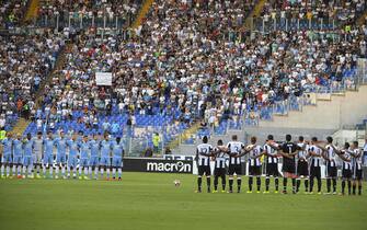 In precedenza il testimone della solidarietà aveva vissuto l'Olimpico come teatro della partecipazione: ecco Lazio e Juventus nel cerchio del centrocampo durante il minuto dedicato alle popolazioni del Centro Italia -
