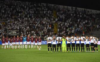 Un omaggio che la Serie B sta dedicando a partire dall’anticipo di venerdì tra Spezia e Salernitana: ecco le squadre abbracciate al Picco prima del match -