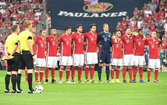 Non è passata inosservata la solidarietà del Bayern Monaco, di scena venerdì nell’anticipo della Bundesliga contro il Werder Brema. Ecco i giocatori di Carlo Ancelotti durante il minuto di silenzio -